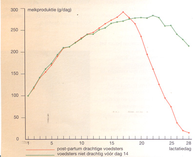 De piek van melkproductie bereikt het hoogtepunt op 21 dagen. Daarna